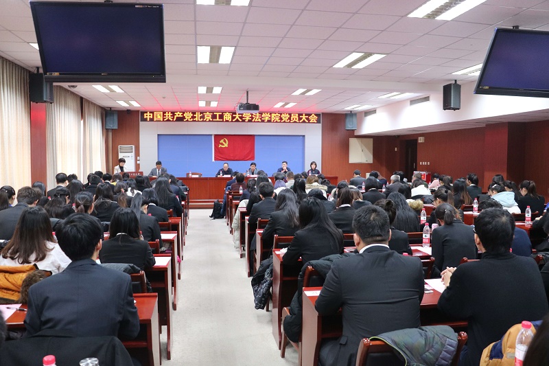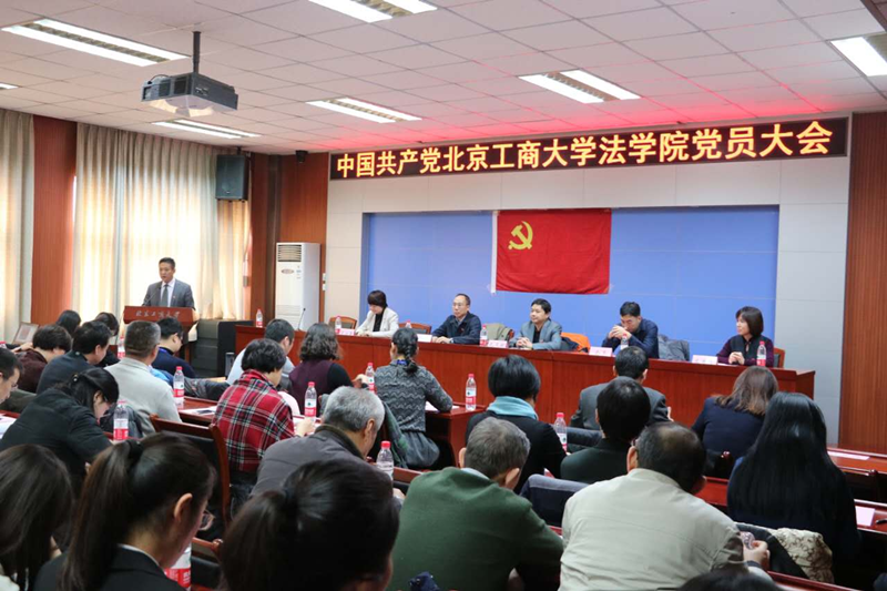 大會在莊嚴的國歌聲中拉開帷幕。校黨委組織部副部長孔凡航宣讀了學校黨委《關(guān)于同意中共北京工商大學法學院召開黨員大會的批復》。