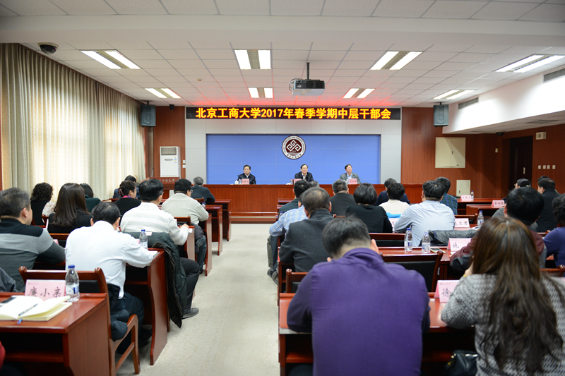 2月17日下午,學校在阜成路校區召開春季學期中層干部會議,部署學校新學期各項工作。校領導譚向勇、孫寶國、張德玉、謝志華、李朝鮮、鄭文紅、賈英民、邱曉平、董竹娟出席會議。全體中層干部參加了會議。會議由黨委副書記張德玉主持。