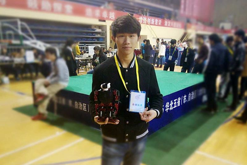 “努力不一定成功,放棄一定會失敗。”這是陳杜的人生信條。抱著多嘗試的心態,陳杜在機緣巧合之下,遇見了自己第一個機器人比賽:2015中國機器人大賽暨RoboCup公開賽。作為一名大二學生,陳杜以學習為目的,加入到研究生學長學姐的團隊中,和他們一起夜以繼日地完成機器人障礙物爬坡的程序設計。這次比賽中,他見識到各大學校優秀的同齡選手們,同時也勾起他對機器人的濃厚興趣,開啟了他在機器人競賽上的大門。