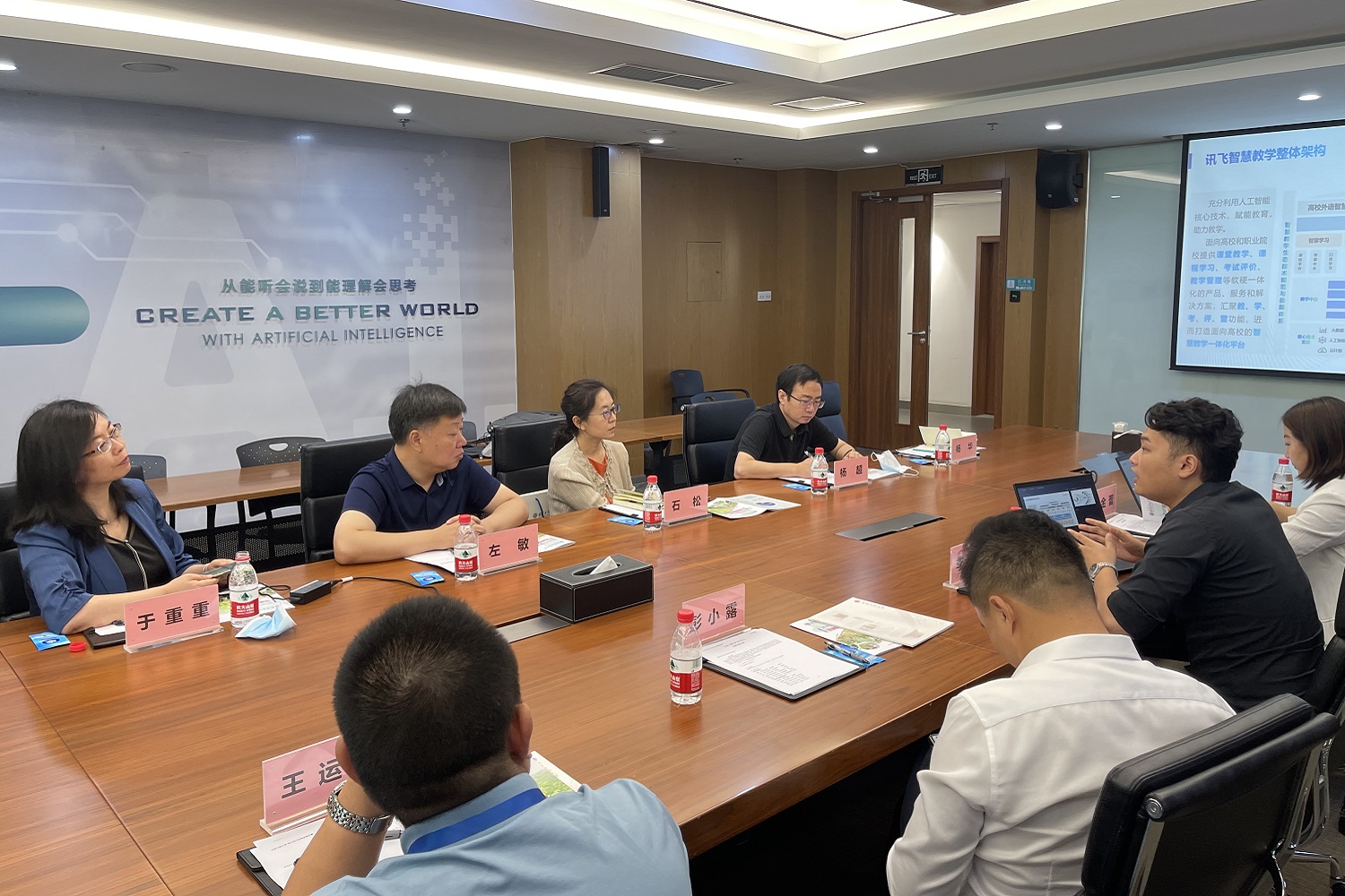 學校調研團參觀了科大訊飛展廳,體驗了科大訊飛核心技術及行業應用,聽取了訊飛A.I.助力高校智慧教學發展的應用成果匯報和人才需求情況。