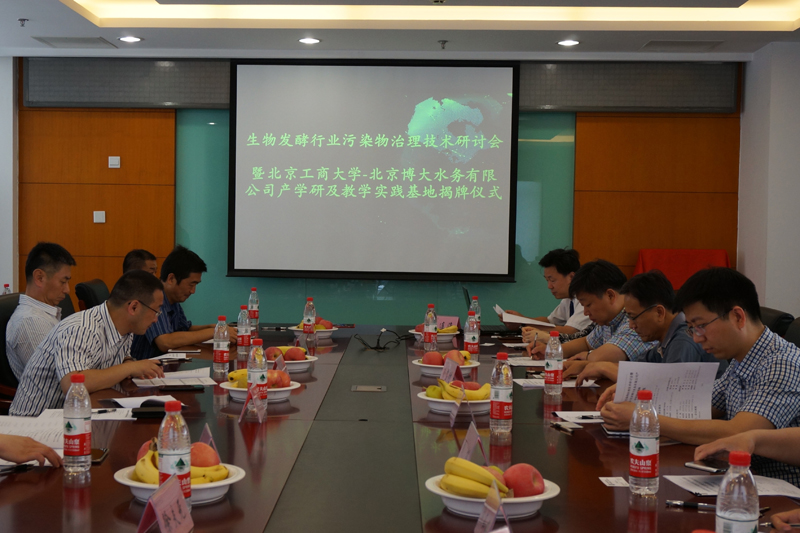 5月20日,生物發(fā)酵行業(yè)污染物治理技術(shù)研討會(huì)暨北京工商大學(xué)-北京博大水務(wù)有限公司產(chǎn)學(xué)研基地揭牌儀式在阜成路校區(qū)舉行。會(huì)議邀請(qǐng)了中國(guó)生物發(fā)酵產(chǎn)業(yè)協(xié)會(huì)杜軍總干事、北京博大水務(wù)有限公司蔣玉明董事長(zhǎng),石曄總工程師,崔勇總經(jīng)理助理等嘉賓出席。我校教務(wù)處左敏處長(zhǎng)、食品學(xué)院徐寶財(cái)院長(zhǎng)、研究生院姚志良副院長(zhǎng)、食品學(xué)院李秀婷副院長(zhǎng)等出席。會(huì)議還邀請(qǐng)了齊魯工業(yè)大學(xué)薛嶸教授、北京工商大學(xué)錢楓教授、北京化工大學(xué)張婷婷副教授、中國(guó)環(huán)境科學(xué)研究院徐夫元副研究員、北京中大立信環(huán)境技術(shù)有限責(zé)任公司孫震董事長(zhǎng)等專家及企業(yè)界代表出席。環(huán)境科學(xué)與工程系全體教師參加了會(huì)議。會(huì)議由環(huán)境科學(xué)與工程系任連海主任主持。