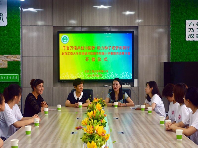 7月6日,外國語學(xué)院24名實(shí)踐團(tuán)學(xué)生在學(xué)院黨總支副書記任金晶、團(tuán)總支書記張悅、輔導(dǎo)員肖云逸的帶領(lǐng)下前往北京工商大學(xué)附屬小學(xué),與附屬小學(xué)校長李慶華、副校長張錦輝共同開展對接啟動儀式。