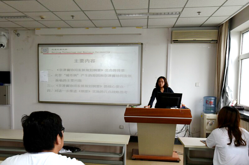 隨后,李麗教授以“京津冀協(xié)同發(fā)展規(guī)劃綱要解讀與戰(zhàn)略思考”為主題展開講座。她從四個(gè)方面對京津冀一體化協(xié)同發(fā)展進(jìn)行解讀,一是回顧了30年來京津冀區(qū)域合作歷程,對《京津冀協(xié)同發(fā)展規(guī)劃綱要》出臺的背景進(jìn)行介紹,提出京津冀區(qū)域的協(xié)同發(fā)展,要把創(chuàng)新放在重要位置;二是分析了北京“城市病”產(chǎn)生的原因和京津冀協(xié)同發(fā)展面臨的主要問題;三是講解了《京津冀協(xié)同發(fā)展規(guī)劃綱要》的核心要點(diǎn),指出京津冀發(fā)展要明確三省市各自功能定位,實(shí)現(xiàn)京津冀區(qū)域的空間結(jié)構(gòu)優(yōu)化,疏解非首都功能,重點(diǎn)領(lǐng)域率先突破,引領(lǐng)區(qū)域協(xié)同發(fā)展;四是提出了對進(jìn)一步推進(jìn)《綱要》實(shí)施的幾點(diǎn)戰(zhàn)略思考。