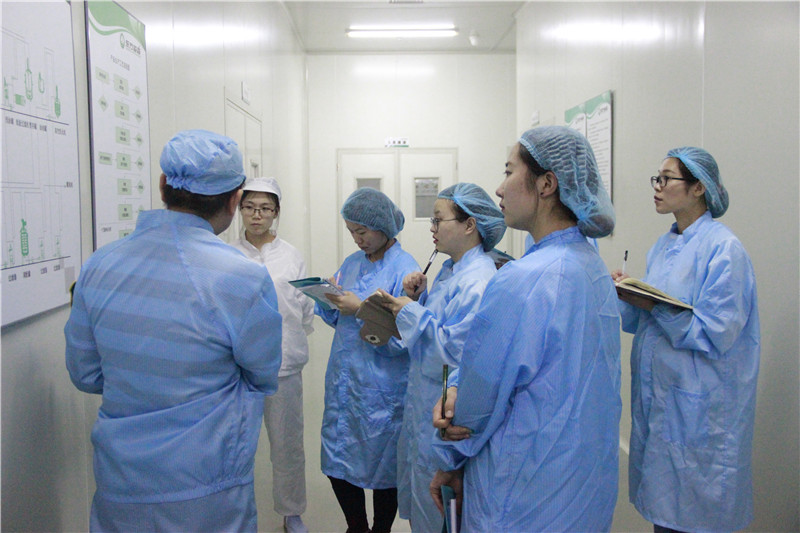 在北京東方淼森公司,企業相關負責人分別從生產中心整體介紹、植物提取基本方法和生產工藝流程、植物提取液工業化轉化及生產方式、植物提取液生產質量管理及控制過程、生產設備結構原理及實踐方式幾個方面向同學們做了詳細講解。通過負責人的講解,同學們從工業生產方面重新認識了植物原料提取的基本原理,并且從該公司“做有思想的植物原料”這一核心理念受到啟發,立志靈活學習,展現學科特色。隨后,實踐團分成三組分別參觀了原料庫房、生產車間和質檢中心。在參觀過程中,每一位負責人都嚴謹負責,耐心講解,讓同學們近距離接觸了植物原料的提取、脫色、過濾、濃縮、保存、質量檢驗等流程,對課本知識在實踐中的應用有了深刻的理解。同時,負責人細致講解了生產過程中的三廢處理問題,同學們都結合專業知識和環保主題進行了積極提問交流。