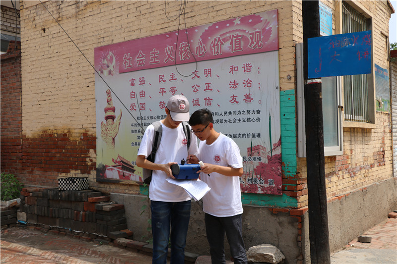 在河北省安新縣端村鎮邊村,實踐團進行家庭生態審核問卷調查及村莊內部大氣、噪音情況監測。調研期間,各小組成員頂著烈日奔波于家家戶戶,用親切近人的言語針對不同部分進行詳細詢問。通過調研了解到,邊村家庭廢物的不恰當處理為該村環境問題主要影響因素,家庭用水情況及能源應用情況良好,大部分村民環境保護意識不強。在了解環境的同時,各小組成員同時也關注調查家庭生活條件情況、人口情況等,從而全方面考慮影響該村可持續發展的相關因素。為監測邊村各地區的PM2.5和環境噪聲,實踐團架設好實驗儀器,在村委會、田邊和馬路旁等地方,進行多次取樣測量,讓實驗數據更能反映問題。通過實驗數據的分析比對,實踐團成員發現邊村地區的空氣污染存在超標問題。