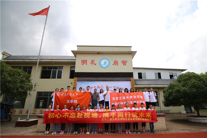 7月8日上午,法學院中國精神學習宣講實踐團在廣西桂林全州縣枧塘中學舉行了暑假社會實踐活動啟動儀式。法學院黨委書記文四英、共青團桂林市委副書記張圓、全州縣副縣長蔣雪嬌、全州縣枧塘鎮黨委書記王崢出席活動,實踐團的成員及枧塘中學的師生參加儀式,活動由共青團全州縣委書記鄧麗君主持。