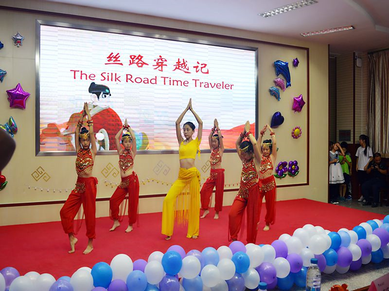 在平常的課堂講授之外,實踐分團成員利用課余時間和學生一起針對最后的實踐成果公開課編排了展示附小精品種子課程特點的“歡迎來附小”情景劇、通過歌聲放飛成長夢想的“歡樂好聲音”音樂劇、從全新文化視角重溫絲綢之路的“One Road One Dream”原創雙語表演劇。