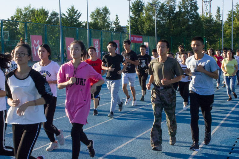 清晨6點40分,各學院新生在輔導員和學生干部的組織下,陸續開始了新學期第一次晨練活動,或跑步熱身,或做操伸展筋骨,或組織跳繩、踢毽子、打籃球等趣味活動。訓練場內響亮的口號、整齊的步伐、抖擻的精神無不彰顯著同學們的青春與活力。柏林藍操場上,理學院、食品學院、材機學院、計信學院和藝傳學院的新生們在各自場地內進行著晨練活動。明媚的陽光下,同學們歡快地進行著跑步、踢腱子、跳繩、打籃球、打排球等豐富多樣的活動。理學院根據新生運動會項目開展晨練活動,同時組織班級間的競賽活動,讓同學們在鍛煉身體的同時增強了體育運動的趣味性和班級的凝聚力。食品學院在集體跑步熱身后,按班級進行了趣味運動為主的自由活動。計信學院在各班分散自由活動前組織同學們齊喊“計信是冠軍”鼓舞士氣,增強了學院的整體凝聚力。“平時不太喜歡運動,這個活動給了我們增加鍛煉的機會,對身體很有好處。”來自食品172班的展遠榮這樣告訴記者。