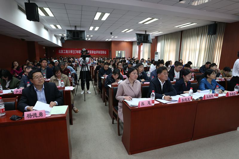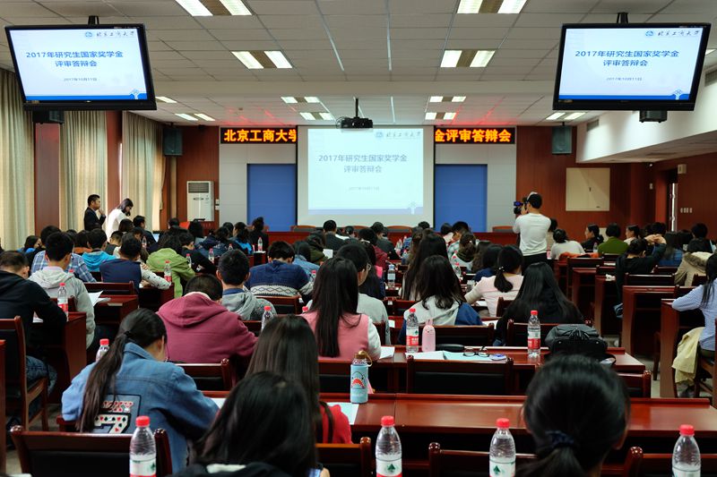 10月11日,學校首次舉辦研究生國獎候選人答辯會,由10個學院通過初評和公示,推選出的50名研究生國家獎學金答辯候選人,按照抽簽順序,依次上場進行了3分鐘的ppt展示。根據(jù)學科差異,答辯會分為文科組和工科組兩場,文科組候選人31名,工科組候選人19名。評審答辯會采取投票積分制,老師為專家評委,每投1票候選人計5分,學生為大眾評委,每投1票候選人計1分,候選人累計總得分按由高到低排序,文科組和工科組分別差額掉得分最低的2人。最終從50名候選人中,投票產(chǎn)生46名研究生國獎獲得者(老生)。答辯會上各位候選人身著正裝,佩戴校徽,侃侃而談,展現(xiàn)了自己讀研期間的豐碩成果,分享了自己的學習和科研經(jīng)驗,來自食品學院學碩趙健發(fā)表論文14篇(其中本人擔任第一作者5篇),申請發(fā)明專利2項(分別排名3和4),其中本人任第一作者1篇論文發(fā)表于刊物《Food Chemistry》(SCI收錄Q1,影響因子4.5);來自商學院的學碩岳慧麗以發(fā)表了4篇學術(shù)論文(均為第二作者),其中2篇發(fā)表于《Food Control》(SCI收錄Q1,影響因子3.5);來自計算機與信息工程學院的專碩易圣倫發(fā)表論文7篇(其中本人擔任第一作者5篇),申請發(fā)明專利3項(均為排名2),其中本人任第一作者1篇論文發(fā)表于刊物《SENSORS》(SCI收錄Q1,影響因子2.7),他還和北京鐵路研究院合作項目,負責高速列車測速測距的算法研究,所提出的算法已經(jīng)被采用并投入使用;來自經(jīng)濟學院的專碩葉鳳嬌榮獲2017年第九屆“挑戰(zhàn)杯”首都大學生課外學術(shù)科技作品競賽特等獎、第五屆數(shù)學中國數(shù)學建模國際賽二等獎、全國市場調(diào)查分析大賽北京市一等獎等。