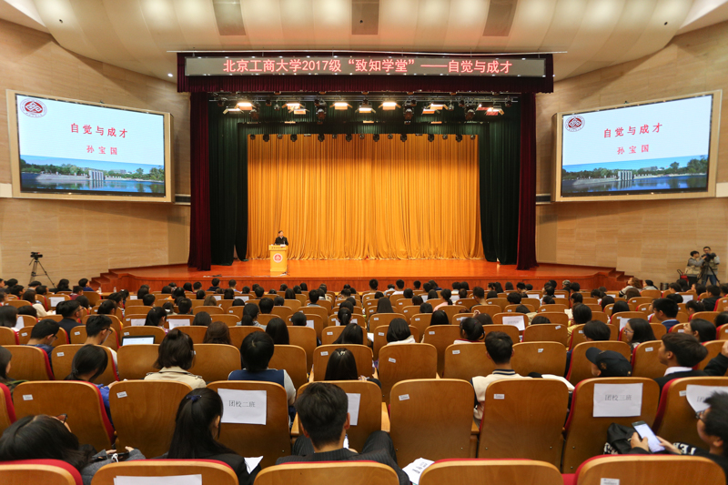 10月17日晚,2017級新生致知學堂第一講在良鄉校區舉辦。校長、中國工程院院士孫寶國受邀為同學們做了題為“自覺與成才”的專題報告。