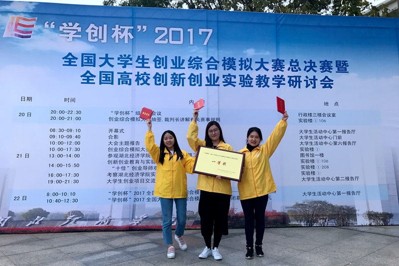 10月20日至22日,“學創杯”2017大學生創業綜合模擬大賽全國總決賽暨全國高校創新創業實踐教學研討會在湖北武漢舉行。我校由經濟學院文科實踐中心曹剛、朱建方老師指導的代表隊,以優異的成績榮獲全國總決賽一等獎。