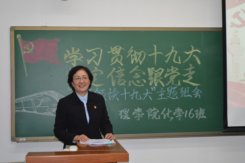 同學(xué)發(fā)言后,班主任周威進(jìn)行了班會(huì)總結(jié),他講到化學(xué)16班是一個(gè)團(tuán)結(jié)奮進(jìn)的班級(jí),有維吾爾族學(xué)生2人、哈薩克族學(xué)生1人,全部都是入黨積極分子,經(jīng)過(guò)黨校的培訓(xùn)并已經(jīng)結(jié)業(yè)。在黨的十九大勝利召開(kāi)之際,對(duì)全班同學(xué)提出了要求并給予希望。