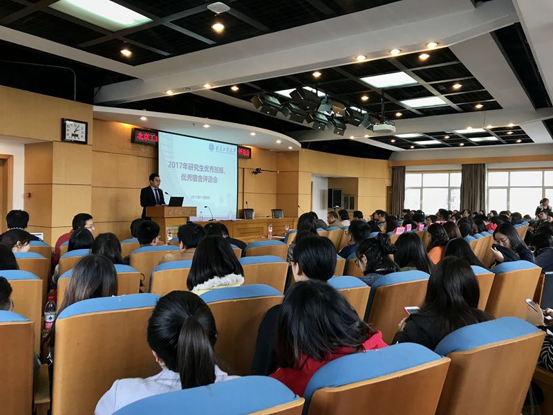 為認(rèn)真學(xué)習(xí)貫徹落實(shí)黨的十九大精神和高校思政工作會議精神,充分發(fā)揮學(xué)院班級、學(xué)生宿舍在促進(jìn)研究生思想政治教育、服務(wù)研究生全面發(fā)展中的積極作用和交流經(jīng)驗(yàn), 11月8日下午,學(xué)校在阜成路校區(qū)召開了2017年研究生優(yōu)秀班級、優(yōu)秀宿舍評選會。學(xué)校黨委副書記張德玉出席會議,研究生院院長兼研工部部長楊德勇、研究生院副院長兼研工部副部長熊慧、理學(xué)院黨委副書記王嘉彥、食品學(xué)院黨委副書記胡燕霞、材機(jī)學(xué)院黨委副書記楊秀萍、經(jīng)濟(jì)學(xué)院黨委副書記杜亞輝、外語學(xué)院黨委副書記任金晶、藝傳學(xué)院黨委副書記劉晶、馬克思主義學(xué)院副院長姚洪越參加了本次評選活動,各學(xué)院的研究生輔導(dǎo)員、優(yōu)秀班級代表、優(yōu)秀宿舍代表和來自全校10個(gè)學(xué)院的100位學(xué)生評委參與評選活動。