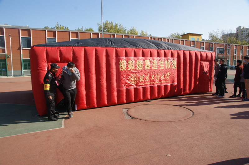 下午13時(shí),在總指揮、學(xué)校黨委副書記張德玉的指揮下,消防疏散演習(xí)正式開始,隨著模擬煙霧升起,消防警報(bào)同時(shí)鳴響,校微型消防站接到火災(zāi)報(bào)警后迅速展開行動(dòng),參演學(xué)生從學(xué)生宿舍快速疏散到集結(jié)區(qū),順利完成了火災(zāi)逃生疏散,體現(xiàn)出學(xué)校在學(xué)生安全教育工作方面取得的良好成果。疏散集結(jié)地域現(xiàn)場(chǎng)還設(shè)置了“消防逃生體驗(yàn)帳篷”,用于真實(shí)模擬逃生過程,參演學(xué)生踴躍參與體驗(yàn)。隨后,保衛(wèi)處楊東杰副處長(zhǎng)為參演同學(xué)講解滅火器的使用方法,同學(xué)們進(jìn)行了滅火演練實(shí)操。