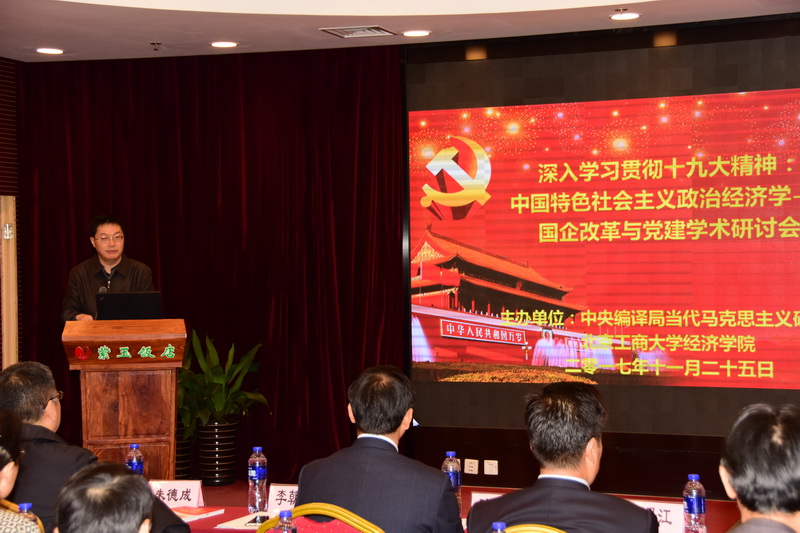 李朝鮮副校長首先致辭,他對各位專家學(xué)者的到來表示熱烈的歡迎。他介紹了我校學(xué)科、專業(yè)建設(shè)的情況,他指出,今年是國有企業(yè)改革“建設(shè)年”,恰逢黨的十九大勝利召開,本次研討會的召開正當(dāng)其時,意義重大,必定會對進(jìn)一步學(xué)習(xí)貫徹黨的十九大精神、深化國有企業(yè)改革領(lǐng)域的學(xué)術(shù)研究產(chǎn)生重要的推動作用,對我校經(jīng)濟(jì)學(xué)學(xué)科建設(shè)具有積極的意義,他預(yù)祝大會取得圓滿成功。中央編譯局當(dāng)代馬克思主義研究部陳家剛主任在致辭中提出國企改革與黨建理論是中國特色社會主義政治經(jīng)濟(jì)學(xué)的重要組成部分,黨的十九大對我們黨和國家的許多方面都提出了新的要求,國有企業(yè)如何適應(yīng)新時代變化和響應(yīng)新時代要求,為我國經(jīng)濟(jì)社會發(fā)展做出新的貢獻(xiàn),需要學(xué)術(shù)理論界進(jìn)行深入討論。