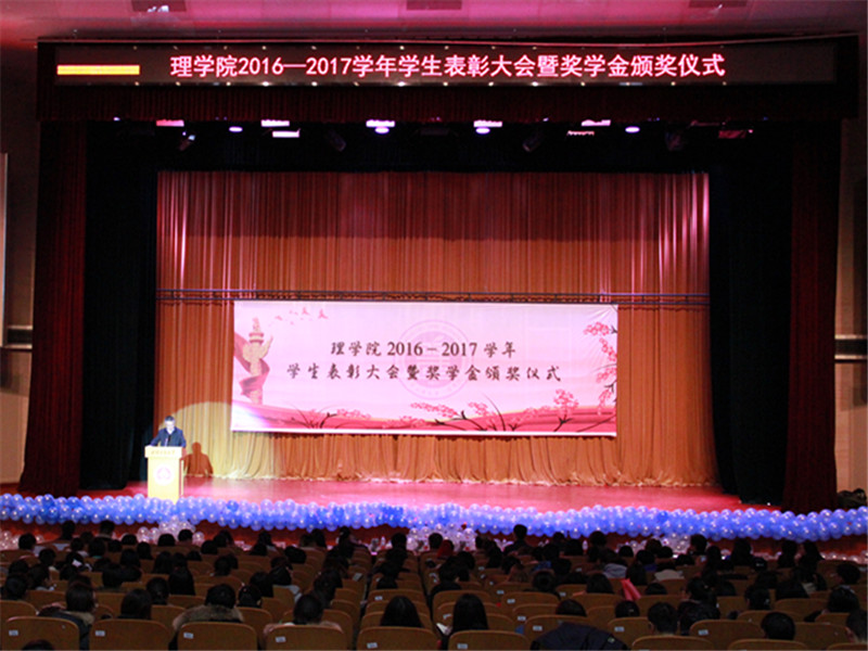 為加強學風建設,表彰優秀,樹立榜樣,11月29日,理學院2016-2017學年學生表彰大會暨獎學金頒獎儀式在良鄉校區舉行。愛茉莉太平洋(上海)研發有限公司代表何泉泉經理、北京東方淼森生物科技有限公司研究院院長馬來記、北京日化協會信息調研部主任莊小潔、學生處副處長蓋曉慶、校友會(教育基金會)汪磊,學院領導、系主任、班主任、輔導員,以及全院所有本科生和研究生參加了大會。