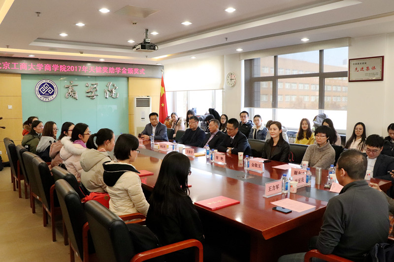 11月29日,商學院在阜成路校區舉辦了天健獎學金助學金頒獎儀式,副校長謝志華出席活動,商學院副院長孫永波、財務系和會計系負責人,天健會計師事務所高級合伙人王振宇、總經理助理常艷、合伙人金敬玉、謝東良,全體獲獎學生及學生代表40余人參加了頒獎儀式。頒獎會由商學院黨委副書記樊江濤主持。