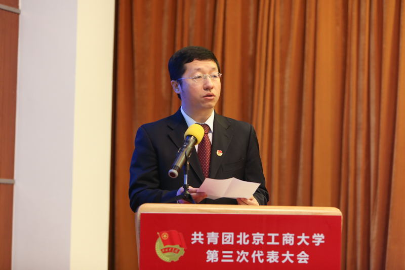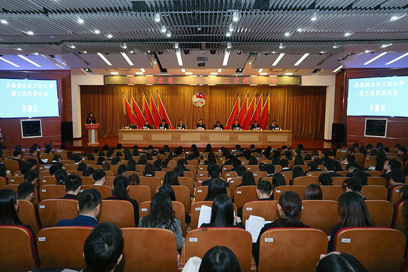 12月9日上午,共青團(tuán)北京工商大學(xué)第三次代表大會在良鄉(xiāng)校區(qū)開幕。共青團(tuán)北京市委員會副書記李健、共青團(tuán)北京市委員會大學(xué)中專工作部部長張秀峰,我校黨委書記譚向勇、黨委副書記張德玉、副校長方德英,中國人民大學(xué)團(tuán)委書記李鵬、校工會副主席張龍等出席開幕式。中國傳媒大學(xué)、中國礦業(yè)大學(xué)、中國青年政治學(xué)院、北京工業(yè)大學(xué)、首都師范大學(xué)等30余所兄弟院校團(tuán)委負(fù)責(zé)人到會祝賀,北京科技大學(xué)、北京航空航天大學(xué)、北京交通大學(xué)等20余所高校團(tuán)委發(fā)來賀信。