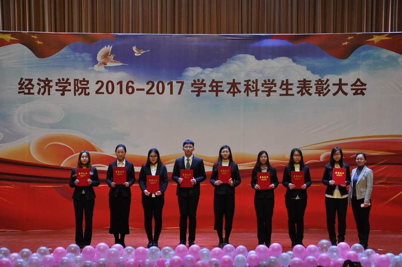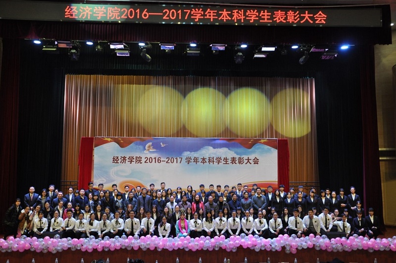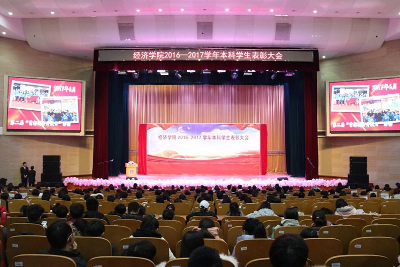 為表彰先進(jìn),發(fā)揮優(yōu)秀集體與個人的榜樣作用,12月13日,經(jīng)濟(jì)學(xué)院舉行了2016-2017學(xué)年本科學(xué)生表彰大會。學(xué)生處副處長蓋曉慶、學(xué)院領(lǐng)導(dǎo)張正平、郭馨梅、張偉、羅玉波、杜亞輝與各系主任、輔導(dǎo)員、17級全體學(xué)生以及各年級獲獎代表500余人參加了大會。大會由學(xué)院團(tuán)委書記單紫薇主持。