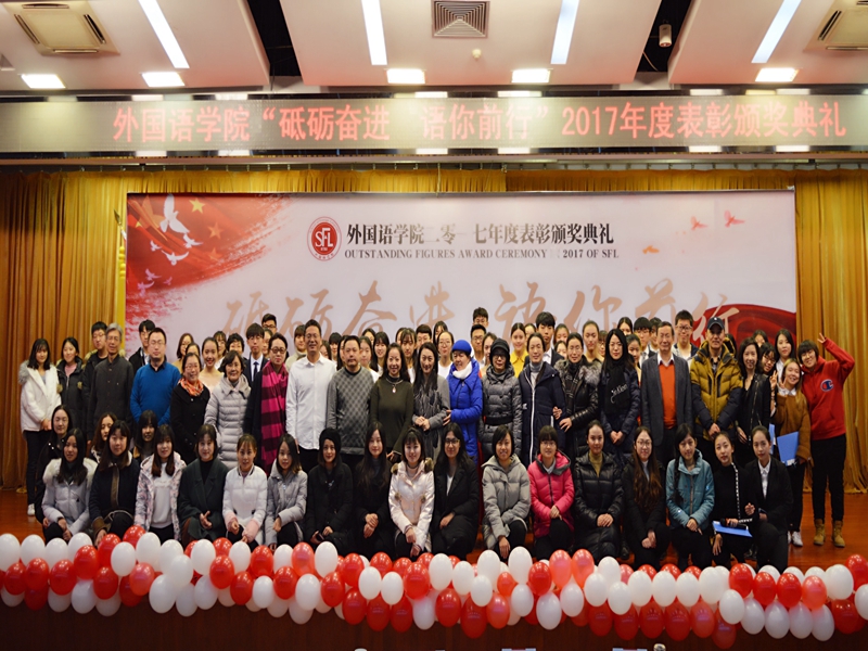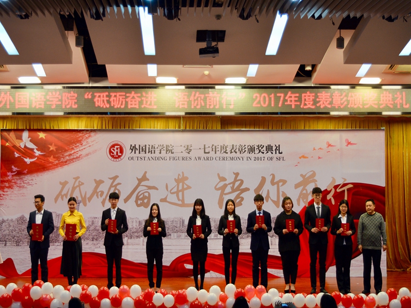 為表彰先進個人和集體,發揮榜樣作用,12月13日,外國語學院舉行2016-2017學年“砥礪奮進語你前行”表彰頒獎典禮。學院領導劉紅艷、楊增成、苗天順、任金晶與各系主任、輔導員、導師、班主任、本科生及研究生參加本次頒獎典禮。