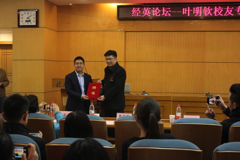 12月27日,經濟學院在阜成路校區舉辦“經英論壇”校友專場報告會。學院邀請78級商業經濟系校友、金港控股有限公司董事長、金港汽車文化發展(北京)股份有限公司董事長兼CEO葉明欽重回母校,為師生做題為“金港商業模式”的高端學術講座。研究生院院長楊德勇、校友會秘書長呂東燕、經濟學院黨委書記張正平與150余名研究生參加了本次報告會。會議由學院黨委副書記杜亞輝主持。