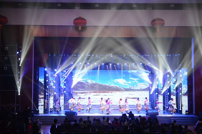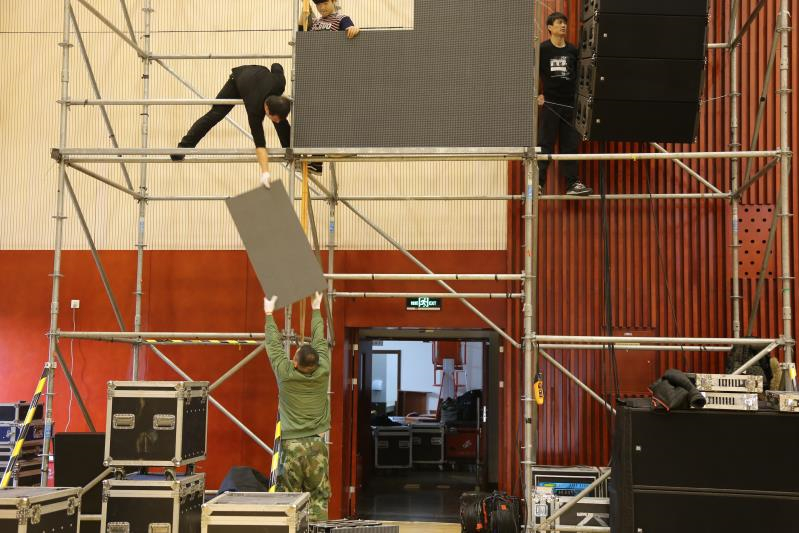 彩排前,晚會工作組對晚會整體進行了一次推演,仔細審查了各個環節:演員們精心裝扮,身著艷麗服裝,翹首以待;主持人精神抖擻,熟記臺詞,充滿自信;道具組認真核對各個節目道具及細節,確保做到動作迅速、準確到位;燈光、音響、話筒等設備人員積極溝通,沉穩應對,力求萬無一失,呈現完美舞臺效果。
