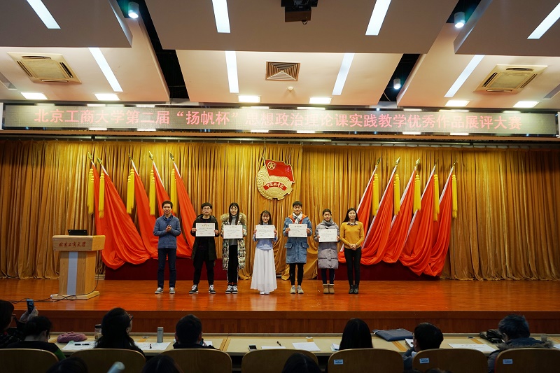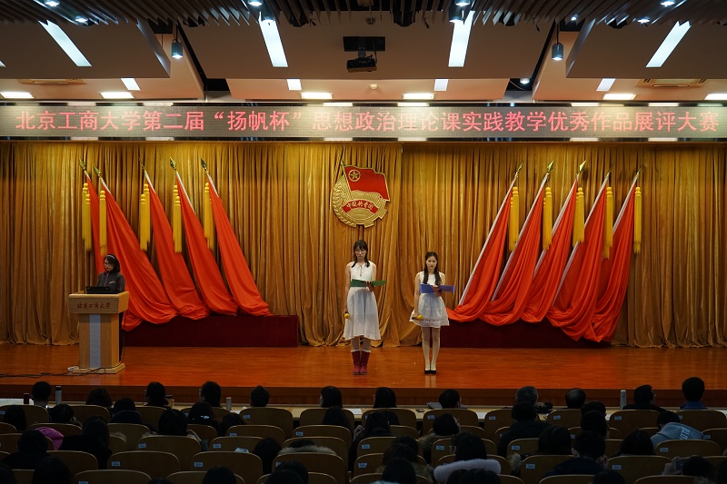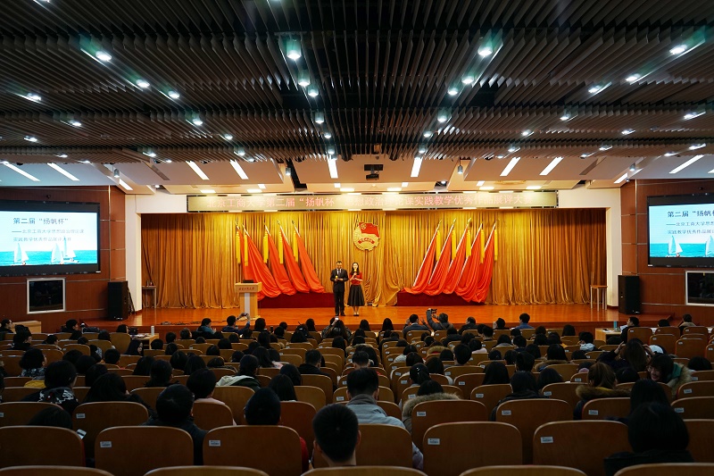 為進(jìn)一步貫徹落實(shí)黨的十九大精神,推動習(xí)近平新時代中國特色社會主義思想在我校落地生根,深化思想政治理論課實(shí)踐教學(xué)改革探索,展示和表彰思想政治理論課社會實(shí)踐優(yōu)秀作品,1月3日,馬克思主義學(xué)院和教務(wù)處聯(lián)合舉辦的第二屆“揚(yáng)帆杯”思想政治理論課實(shí)踐教學(xué)優(yōu)秀作品展評大賽在良鄉(xiāng)校區(qū)舉行。馬克思主義學(xué)院院長王魯娜、副院長姚洪越、校團(tuán)委副書記孫惟佳、教務(wù)處高萌老師和學(xué)院全體教師參加大賽并擔(dān)任教師評委。各院系學(xué)生代表近200人觀摩了參賽作品展評并參與現(xiàn)場實(shí)時投票。
