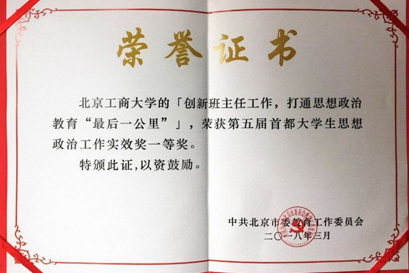 3月16日下午,北京市委教育工委組織召開北京高校2018年宣傳思想工作會議。市委教育工委常務(wù)副書記鄭吉春出席并講話。會議對2017年北京高校宣傳思想領(lǐng)域重點工作進(jìn)行了總結(jié)表彰。我校“創(chuàng)新班主任工作,打通思想政治教育最后一公里”獲得第五屆首都大學(xué)生思想政治工作實效獎一等獎。這是近年來我校在這一獎項上獲得的最高榮譽。張德玉副書記代表學(xué)校上臺領(lǐng)獎。