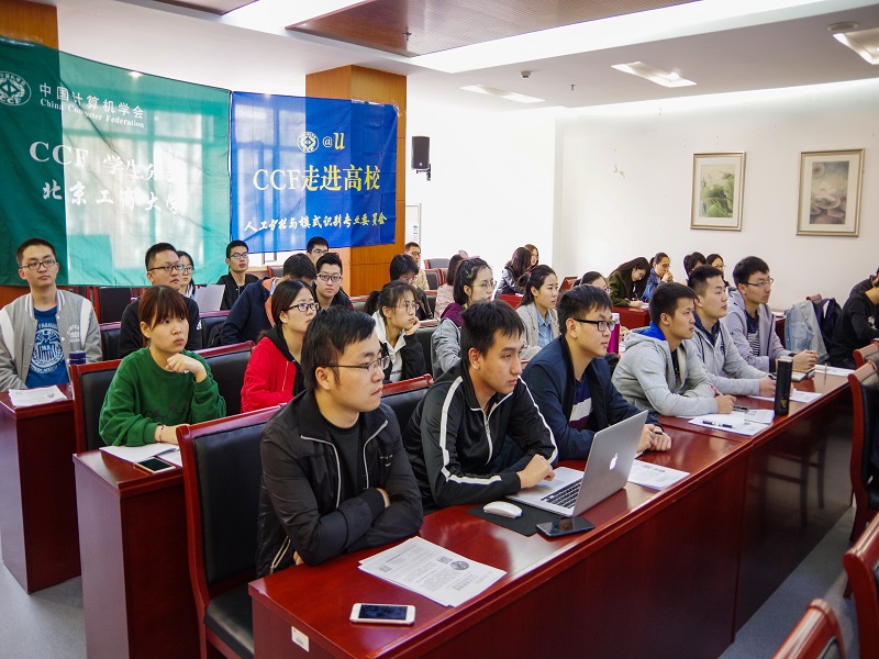本次“CCF走進高校”活動由學院“CCF北京工商大學學生分會”組織,CCF北京工商大學學生分會是CCF繼清華大學、中科院計算所、北京航空航天大學之后批準成立的北京地區第4個分會,也是CCF在全國授予成立的第20個學生分會,后續會努力將組織更多CCF活動引領學生共享學術盛筵。