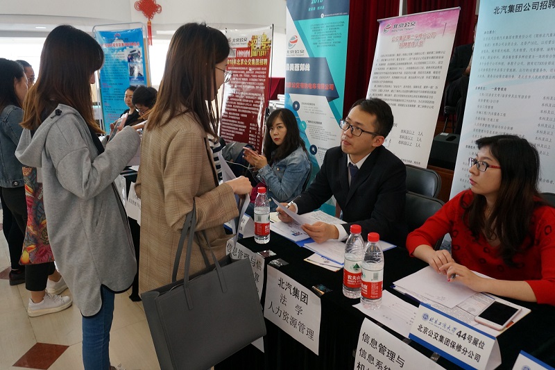 4月17至18日,北京市人社局畢業(yè)生就業(yè)服務(wù)中心聯(lián)合我校,攜手253家用人單位共同開展“2018年北京地區(qū)畢業(yè)生就業(yè)服務(wù)月暨公共就業(yè)和人才服務(wù)進校園”活動。本次活動以三場大型雙選會的形式在我校阜成路校區(qū)舉行。學校黨委副書記張德玉、北京市畢業(yè)生就業(yè)服務(wù)中心副主任宋雙印到場指導工作,學生處、保衛(wèi)處及各學院就業(yè)工作負責人到場協(xié)助支持,活動現(xiàn)場氣氛熱烈,反響良好。