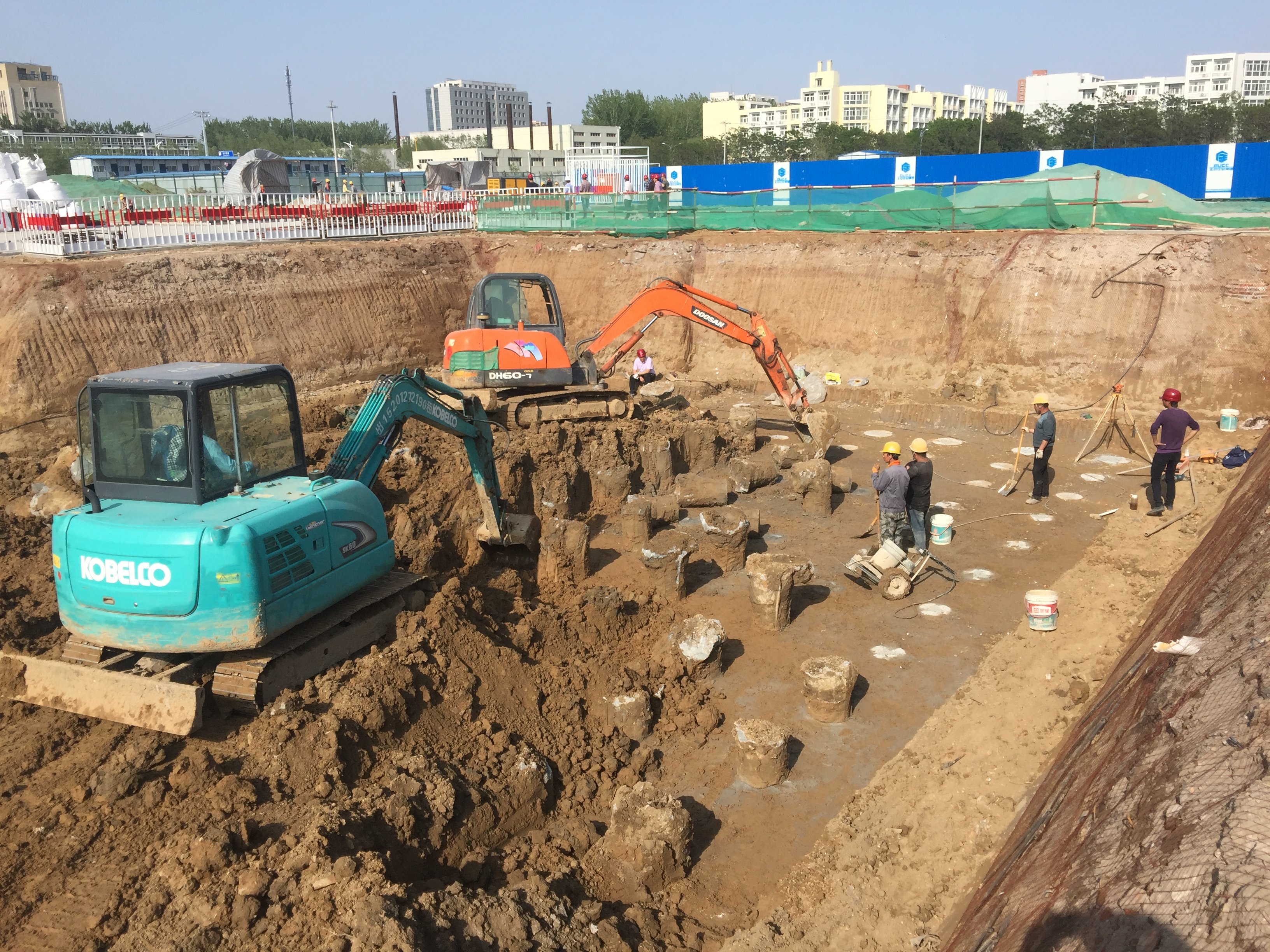項目開工后,工作小組有關成員單位密切配合,在資金籌措、全過程跟蹤審計、現場保衛、環境整治、網絡信息化、設備購置、用戶意見征求等方面保障良鄉校區二期新建工程項目的順利開展。目前四棟學生宿舍樓已完成CFG樁基礎施工工作,待壓樁試驗完成出具報告合格后組織房山區建委質檢站及相關參建單位進行基坑驗槽工作。下一階段將進行地下結構工程,預計6月下旬完成。