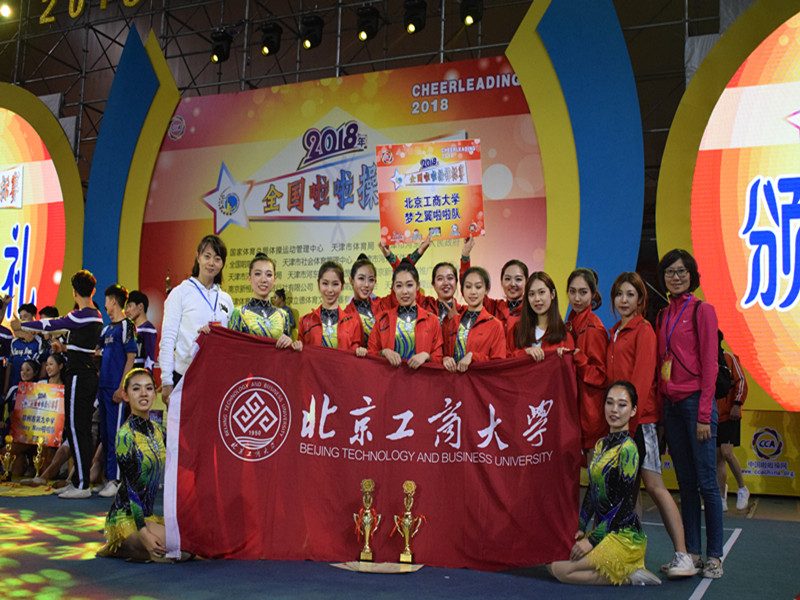近日,2018年全國啦啦操錦標賽在天津市東局子體育館拉開序幕。我校健美操隊在教練員王曉霞、孫彥瑩老師的帶領下,參加了公開青年丙組爵士規定動作小集體組(2016版)、學校俱樂部青年丙組爵士規定動作小集體組(2016版)、公開青年丙組爵士自選動作小集體組、學校俱樂部青年丙組爵士自選動作小集體組四項比賽,經過激烈角逐,均獲得第一名的優異成績。
