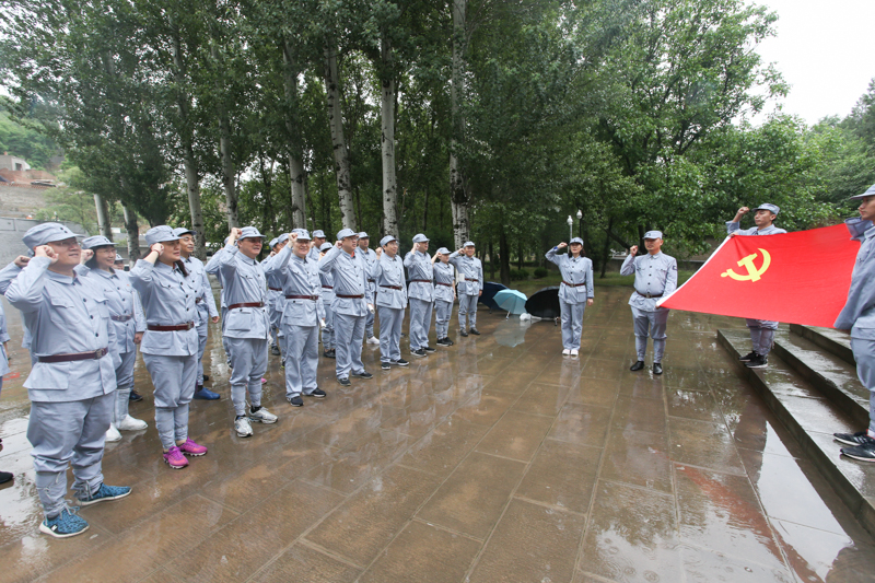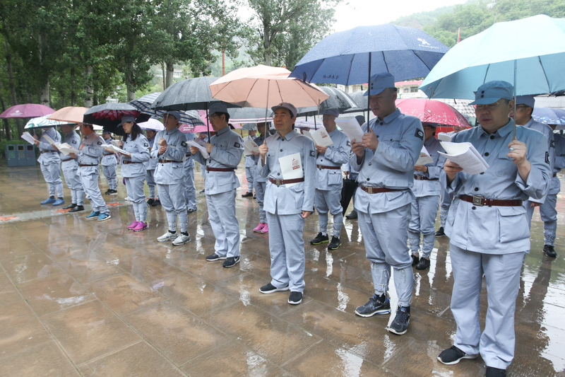 在《為人民服務》講話紀念廣場的講臺上,學員們冒雨整齊列隊,面向黨旗,重溫入黨誓詞;在張思德塑像前,學員們集體誦讀了毛澤東的名篇《為人民服務》,追溯張思德精神,領悟為人民服務的精髓。