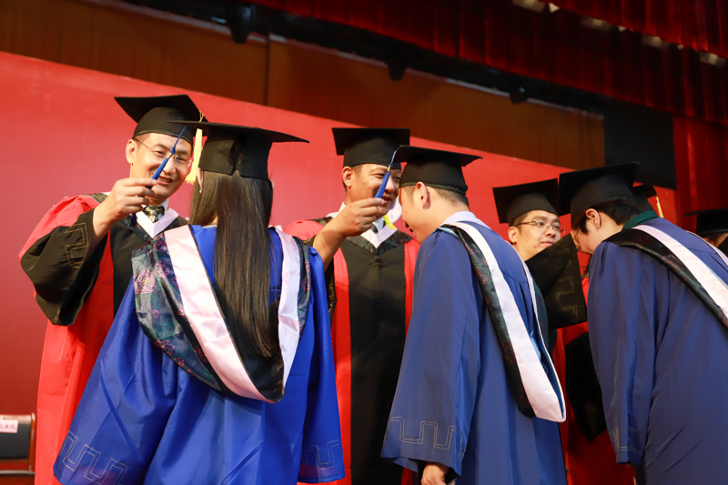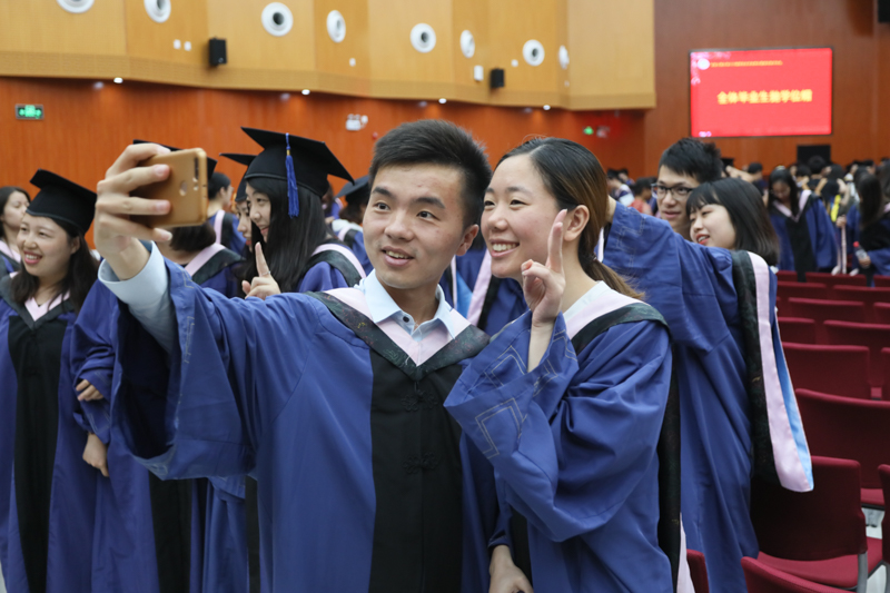 在激昂的樂曲聲中,同學(xué)們身著學(xué)位服依次有序走上主席臺,校領(lǐng)導(dǎo)、校學(xué)位評定委員會委員為他們扶正流蘇并留下珍貴合影。學(xué)位授予儀式最后,在“我要飛得更高”的音樂聲中,畢業(yè)生們歡呼著“畢業(yè)啦!”并一起把學(xué)位帽拋向空中,為畢業(yè)典禮畫上了圓滿的句號。鮮花、掌聲、歡笑、淚水,禮堂里到處都是畢業(yè)的喜悅和分別的愁緒。