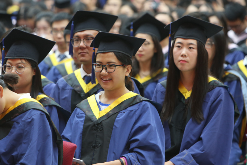 在雄壯的國歌聲中,典禮正式開始。副校長謝志華宣讀《北京工商大學(xué)關(guān)于2018屆研究生準(zhǔn)予畢業(yè)及學(xué)位授予的決定》,副校長李朝鮮宣讀《北京工商大學(xué)關(guān)于表彰2018屆優(yōu)秀畢業(yè)研究生的決定》。2018年,我校共有3名博士生、926名全日制碩士研究生獲得畢業(yè)證書,共有3名博士研究生被授予博士學(xué)位,945名碩士研究生(含非全日制和同等學(xué)力)被授予碩士學(xué)位;有77名研究生被評為校級優(yōu)秀畢業(yè)生,其中38名研究生被推薦為市級優(yōu)秀畢業(yè)生。