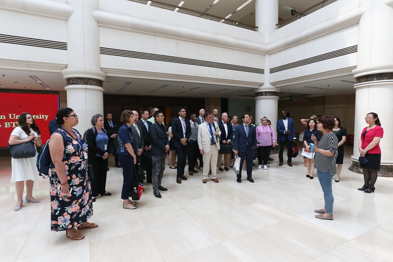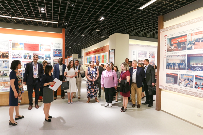 會見前,美國高校代表團(tuán)一行在國際交流與合作處處長劉影的陪同下參觀了良鄉(xiāng)校區(qū)校史館、圖書館和文科實(shí)踐中心,并與相關(guān)部門的領(lǐng)導(dǎo)和老師進(jìn)行了交流。
