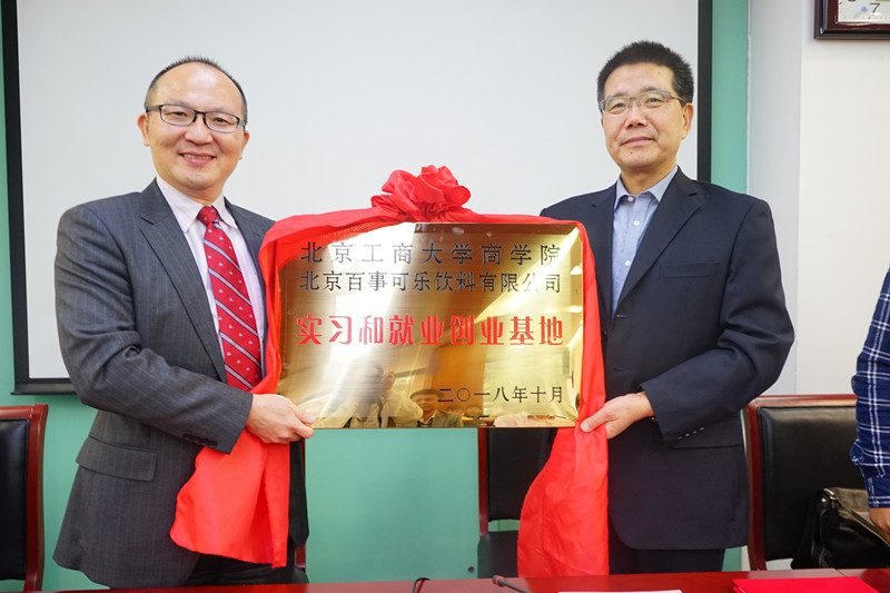 王國順院長在致辭中介紹了商學院辦學歷史與成就,對學院與北京百事可樂飲料公司在人才培養和輸送方面的合作提出了美好愿景。他談到,培養商科人才更需要應社會所需,與市場接軌,注重大學生的在校學習和企業實踐,廣大教師同樣需要加強與企業的交流,開展案例研討和學術科研,達到理論與實踐相結合,貫徹落實立德樹人根本任務。北京百事可樂公司的上級單位康師傅控股公司校企關系總監蘇哲民在講話中表示,作為有社會責任感的企業,應當主動與大學對接,通過校企合作的方式為廣大青年的成長成才設計好通道,也為企業人才儲備打好基礎,并希望能夠與商學院在學術研討、企業管理研究等方面開展更深層次的合作,努力達到大學、企業、學生的“三贏”局面。