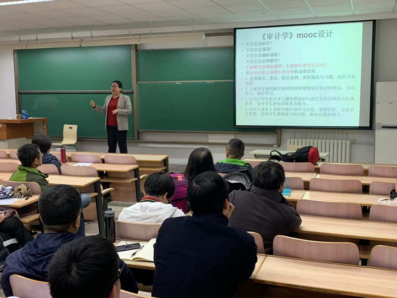 在講座中,李曉慧教授提出教學的本質是啟迪學生智慧,因材施教、因人施教,不能有固化的模式。同時,李教授在深入辨析MOOC、微課和翻轉課堂三者差異和各自優勢的基礎上,詳細介紹了《審計學》MOOC的設計內容和技術細節,包括課程設計、團隊搭建、腳本寫作、同步教學資源庫以及教學資源的后期維護等方面的技術技巧,甚至連課程文字、語音、語調、表情和案例的插入時機等都與在座教師進行了詳細和充分的交流。這些全過程的分享,讓商學院教師受益匪淺。