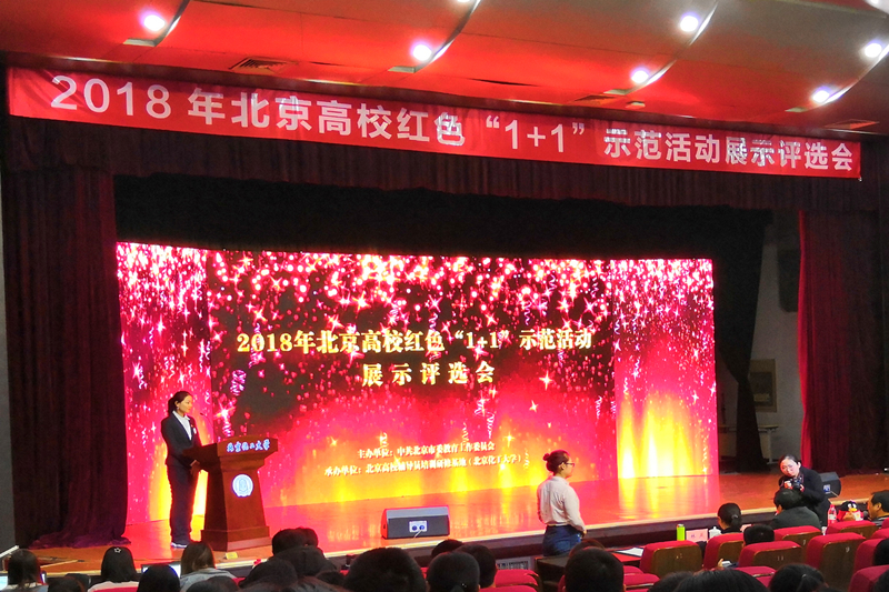 11月28日下午,由北京市委教育工委開展的以“不忘初心 牢記使命,勇做擔當民族復興大任的時代新人”為主題的北京高校紅色“1+1”示范活動展示評選會在北京化工大學舉行。經北京56所高校指導、總結、推薦的1313個學生黨支部參與了今年的活動,有25個黨支部入圍了最后的評選會。我校經濟學院本科學生16級黨支部脫穎而出,再次榮獲一等獎。2018年北京高校紅色“1+1”示范活動展示評選會在我校科學會堂舉行。市委宣傳部、市委教工委、市委農工委、團市委、首都文明辦等相關部門負責人應邀擔任評委。各高校主管部門負責人、學生黨支部代表、媒體代表共400多人參加了評審會。