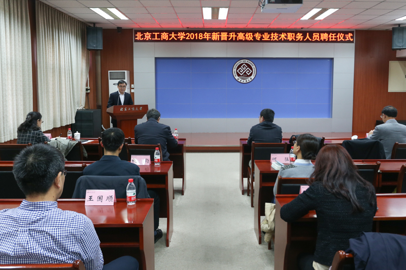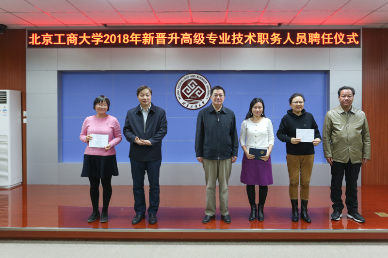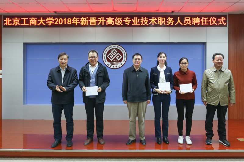 孫寶國校長在講話中首先向獲聘人員表示祝賀。他指出:舉行儀式是為了進一步增強教師的榮譽感和責任感。晉升職稱是專業技術人員的愿望,近幾年學校的職稱工作嚴謹規范,但是破格或直升之路還需進一步完善。晉升職稱是榮譽,更是責任,是起點,而不是終點。學校發展進入關鍵時期,希望獲聘人員增強責任意識,在教學、科研、學科建設和管理等方面再接再厲、再出佳績。學校未來的發展目標是建成商科、輕工和食品特色的高水平研究型大學,這是我們努力的方向。目標一旦確定就不會動搖,而且也有信心實現。我們要用自己的雙手,通過自己的努力,把學校帶入世界一流大學發展的行列。同時,也要清楚地看到學校在向世界一流大學邁進的過程中的短板和不足,我們要認真分析,凝練好方向。學校發展與每一位教職工息息相關,希望大家充分發揮作用,為學校學科建設添磚加瓦,為學校未來的發展共同努力,做出更大的貢獻。