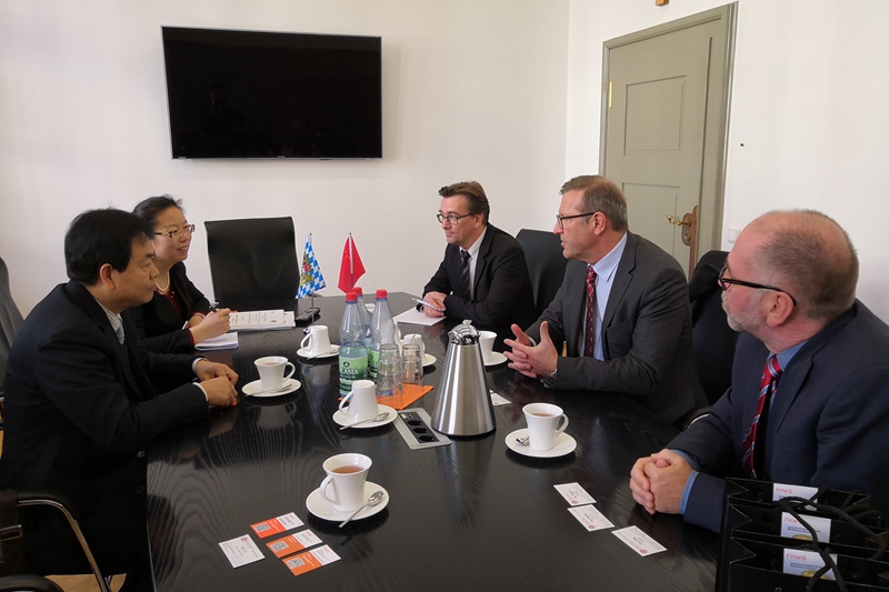 在德國維爾茨堡-施韋因富特應用技術大學,賈英民副校長與羅伯科普夫(Dr. Roßkopf)副校長、經濟與商業管理學部國際關系主任雷納·韋納(Rainer Wehner)、國際辦公室副主任托馬斯·斯密特(Thomas Schmitt)、經濟與商業管理學部國際管理主任曼菲爾德·凱瑟(Manfred Kiesel)進行會談并代表學校簽署校際合作協議和交換生合作協議。雙方希望能夠通過兩校已搭建起的中小企業學術研究項目為平臺,在開展學生交流的同時,進一步在學術領域開展合作。