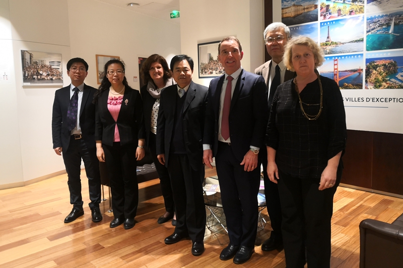 在法國高等對外貿易學校,賈英民副校長與波斯讓·克里斯多夫(Boisseau Christophe)校長、國際部主任珍妮弗·卡羅斯(Jennifer Kraus)、研究生部主任、以及李建樂教授進行會談。雙方回顧了目前兩校學生合作項目情況,共同表達了在雙方的優勢學科和領域開辟更多項目的合作意向,重點對開拓研究生層次聯合培養和學生學位合作項目進行了深入交流。