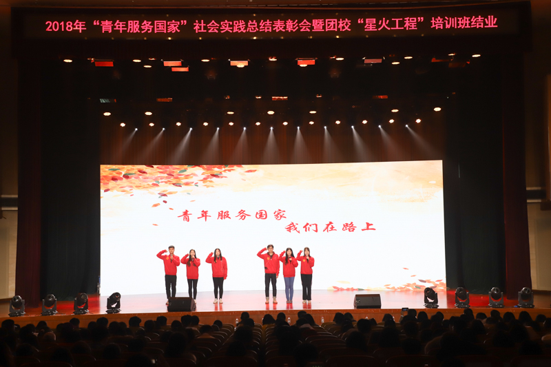 12月19日,學校2018年“青年服務國家”暑期社會實踐總結表彰會暨團校“星火工程”培訓班結業儀式在良鄉校區舉行。學校黨委副書記張德玉出席本次大會,黨委宣傳部常務副部長張春萍、校團委書記王海偉、學生處副處長蓋曉慶、校團委副書記孫惟佳、經濟學院黨委副書記杜亞輝、商學院黨委副書記樊江濤,實踐對接單位代表房山區南尚樂中學校長毛玉革、良鄉五中副校長許俊杰,各學院團委書記、暑期社會實踐帶隊教師以及700余名團校學員和學生骨干參加了大會。