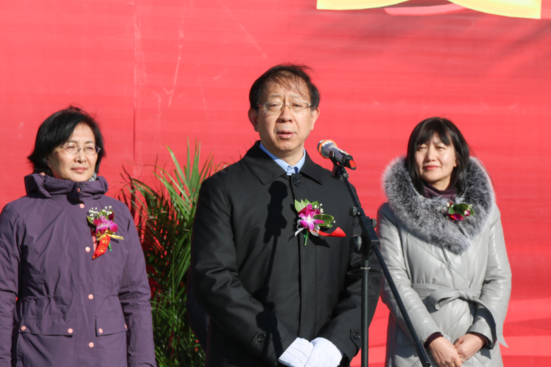 校長孫寶國院士在儀式上致辭。他代表學校黨委和行政、代表黨委書記譚向勇教授向參加新建工程奠基儀式的各位領導、來賓和師生代表表示熱烈的歡迎和衷心的感謝。他談到,2018年是學校歷史上不平凡的一年,學校獲批博士學位授予單位,應用經濟學、食品科學與工程獲得一級學科博士學位授權點,實現了幾代北工商人夢寐以求的愿望;2019年,將迎來建國70周年,也是學校“十三五”發展的決勝之年。良鄉校區新建工程的建設為北京工商大學未來的騰飛插上了翅膀。下一個階段施工任務更加艱巨,他希望各參建單位要牢記質量意識、安全意識,做到精誠團結,精細管理,精心施工,同北京工商大學一起凝心聚力,搶抓機遇,加快建設具有商科、食品和輕工為特色的高水平研究型大學,為首都經濟社會發展做出更大的貢獻!