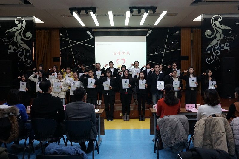 蓋曉慶副處長(zhǎng)宣讀了《關(guān)于聘任2019年度“學(xué)生資助宣傳大使”的決定》,并與張德玉副書記共同為新聘資助大使頒發(fā)聘書及紀(jì)念徽章。30名大使在全場(chǎng)老師和同學(xué)面前莊嚴(yán)宣誓,爭(zhēng)做勵(lì)志成才的先行者、資助政策的傳播者和知恩、感恩的踐行者。