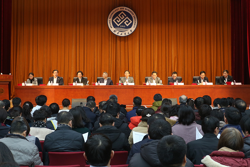 1月15日,學校2018年度科學研究與學科建設總結表彰大會在阜成路校區召開。學校領導孫寶國、張德玉、謝志華、李朝鮮、張耘、鄭文紅、賈英民、方德英、董竹娟出席大會,并為獲獎教師頒獎。全體中層干部、全體教師黨支部書記、各學院教師、學科秘書、科研秘書以及研究生代表參加大會。副校長鄭文紅主持總結表彰大會。