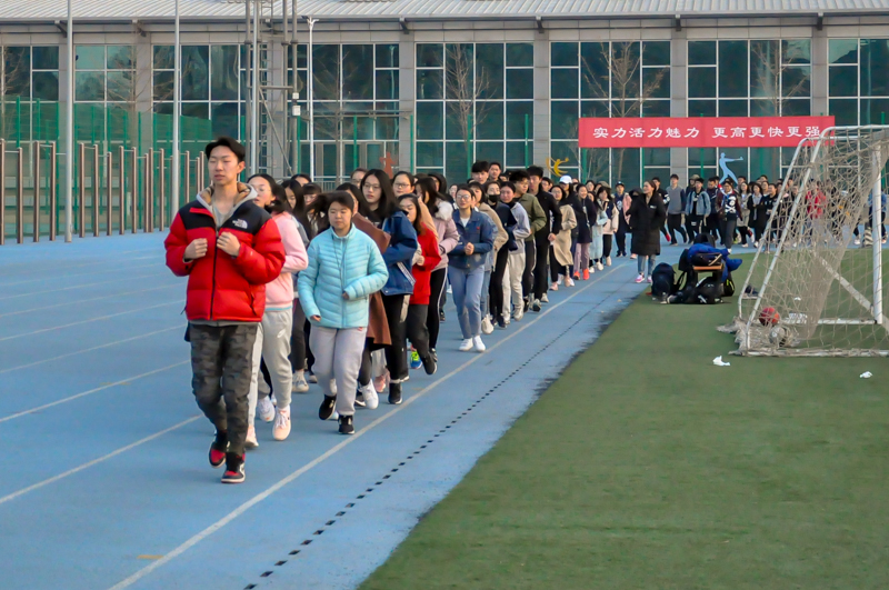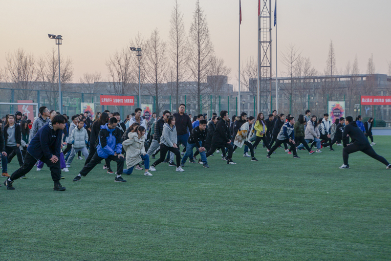 “第一節,伸展運動……”早上6點50分,良鄉校區柏林藍運動場上理學院、材機學院、計信學院、外國語學院的2018級學生們已經按時到達各學院指定的鍛煉場地,在高年級學生干部的組織下做起了晨練準備活動。同學們在運動場上分批次進行晨跑熱身,在初日的照耀下留下自己青春的烙印。