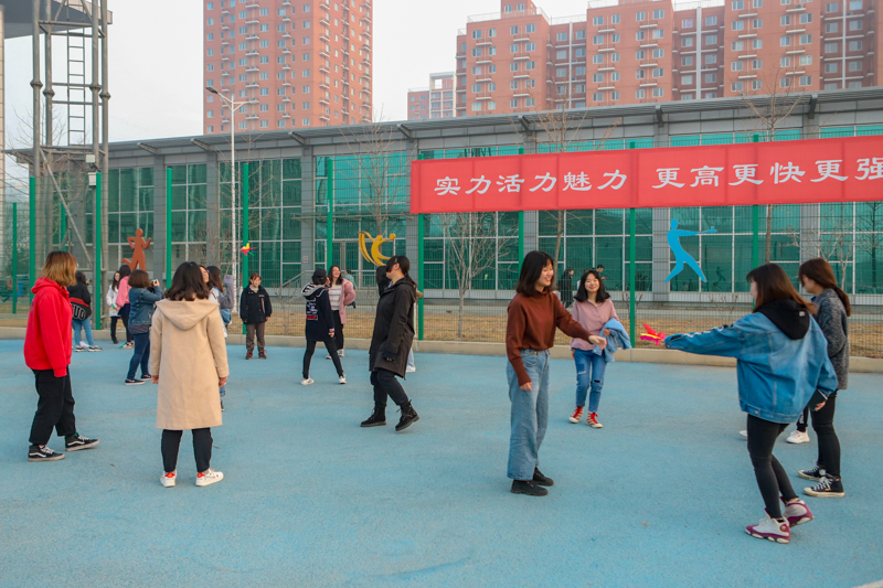 與此同時,各學院也為不參加比賽的同學們準備了各具特色的趣味活動。食品學院選擇了“趣味呼啦圈”活動,材機學院的同學們則踢毽子、跳繩,計信學院設置了“毛毛蟲”活動,經濟學院組織了袋鼠跳、兩人三足競速跑,商學院的同學在跑步后做廣播操,外國語學院選擇花樣折返跑和拔河。同學們積極參與晨練,享受其中。來自理學院統計18的趙雪姣同學感慨道:“身體是革命的本錢,只有把身體鍛煉好我們才有精力好好學習。而且鍛煉還能緩解課業壓力,在強健體魄的同時還愉悅了心靈。”