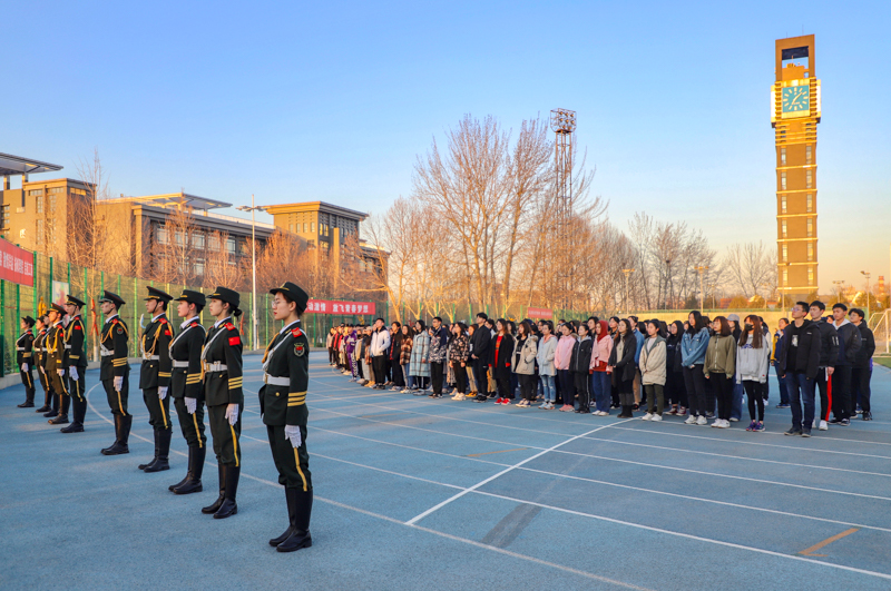 在運動場的東南角,身著綠色軍裝、步伐堅毅的國旗班學生格外引人注目。每天早上7點,升旗儀式正式開始。在英姿颯爽的國旗班隊員的護衛下,鮮艷的五星紅旗在同學們崇敬的目光中冉冉升起。此刻,運動場上,每一名工商學子都停下腳步,轉向國旗行注目禮。國旗下的身影充滿青春朝氣,正是北工商學子在新的學期樹立遠大理想,明確奮斗目標的真實寫照。