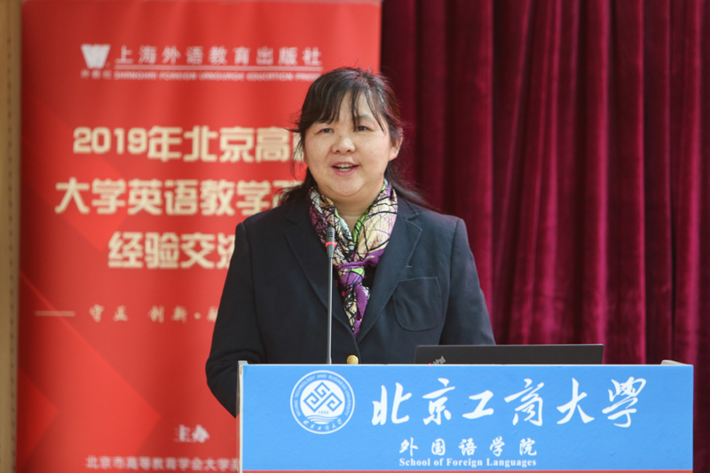我校外國語學院院長劉紅艷教授以“多模態理念指導下的大學英語十級分級教學改革實踐”為題,介紹了北京工商大學模式的“五條主線、十級分層”的復合應用型人才分層級培養模型,提出融合教育和人文技術教育的理念,著重闡述了多模態理念指導下我校“互聯網+”貫全程的大英分級教改實踐,演示了“三多”互動實驗室和VR商務英語虛擬互動實驗室在英語教改中的運用,分享了大學英語尋求國際項目支持和合作的嘗試和期望。楊雪瑩老師從主題、呈現、輔助、反饋四個方面,談了多模態理念在我校大學英語1-4級教改實踐中的運用和體會。